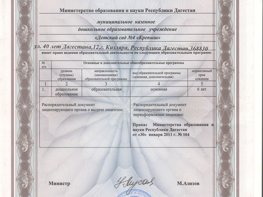 | Адрес местонахождения образовательной организации* | 368830, Республика Дагестан, город Кизляр, улица 40 лет Дагестана, д 12 |